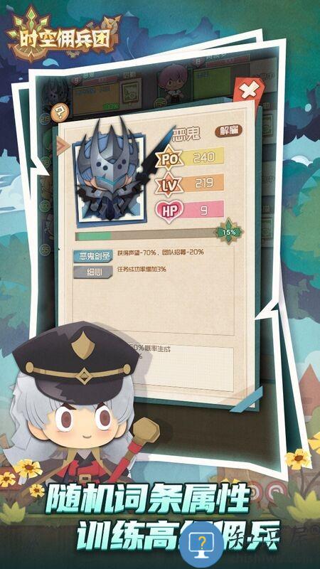 时空佣兵团最新版是一款模拟经营类的休闲益智游戏,游戏画面场景都是采用比较卡通柔和的风格进行崭新,玩家在游戏中还是可以通过游戏任务来提升声望,并且招募更多的小伙伴一起组建属于自己的最强大兵团,守护游戏世界的和平!