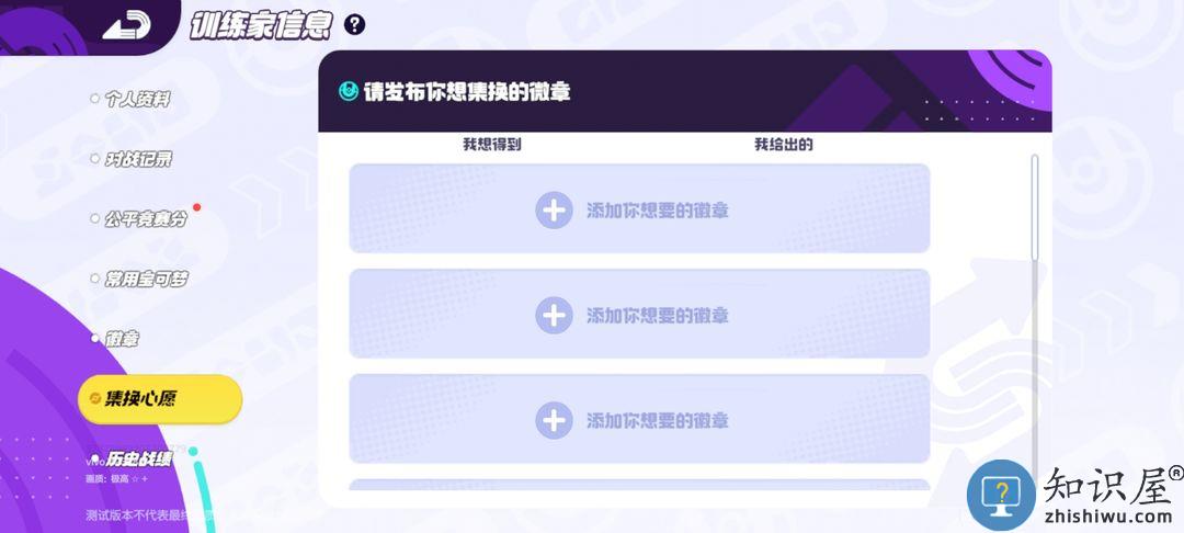 在集换心愿中可以选择自己想要的徽章,与他人交换,加好友后可直接点击主页交换,若想与全服玩家交换,可以将心愿单发送至集换市场,便可与全服玩家集换徽章辣