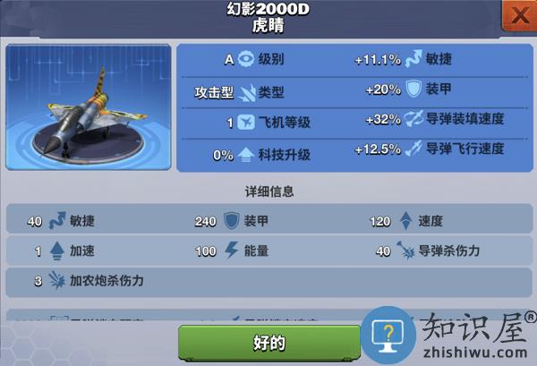 玩家达到400勋章解锁此架飞机,只需花费32000金币即可获得。幻影2000D虎晴是一款金币机,价格便宜,属性良好,适合2V2联机对战,属于A级攻击型飞机