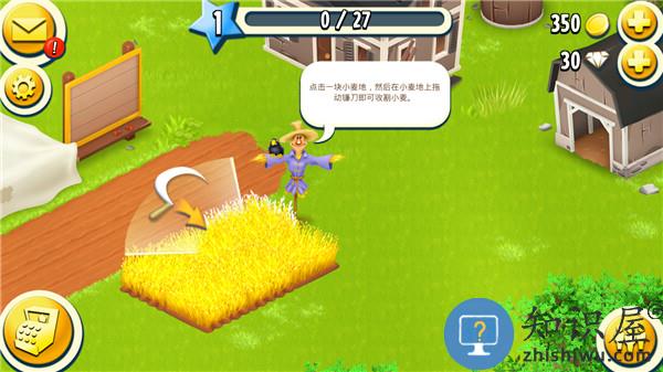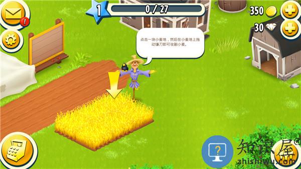按照教程提示,点击小麦,选择镰刀,然后拖动镰刀收割整片小麦。