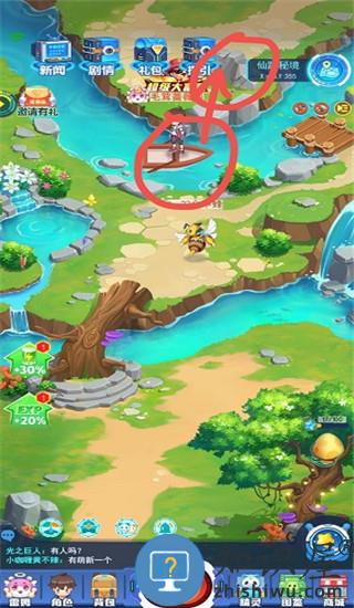 2、第二朵:我们再坐上小船来到仙踪秘境,这个时候和第一朵花一样,点击上方空地并点击空地,来到上方陆地。最后点击符文石头打败守卫就可以获得第二朵花了!图片如下: