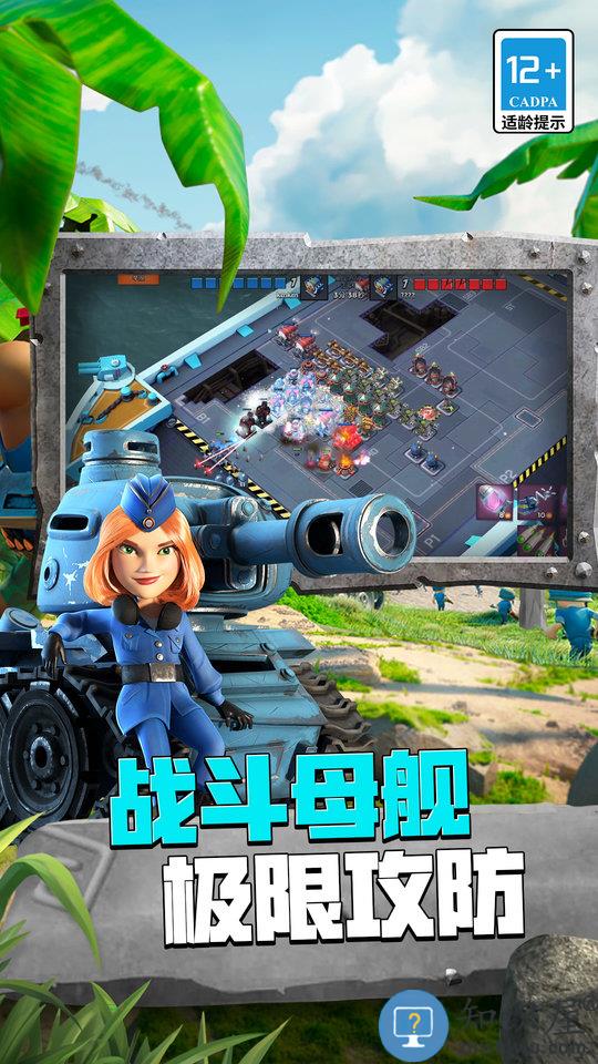 海岛奇兵从沙滩指定范围内登陆。然后在海面上有战舰提供导弹、医疗支援,同时还能释放引导弹进行实时打击目标指挥。至于坐着登陆艇成功冲上岸的士兵,全自动战斗,会优先攻击最近的建筑,这时就需要你引导他们集中火力,打掉敌方防御工事先。最后,只要摧毁敌人的司令部就能引爆敌人整个基地,获得胜利,拿到战利品。