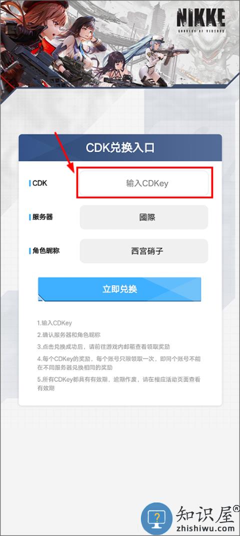 4、最后在兑换框输入兑换码,以及选择服务器即可。