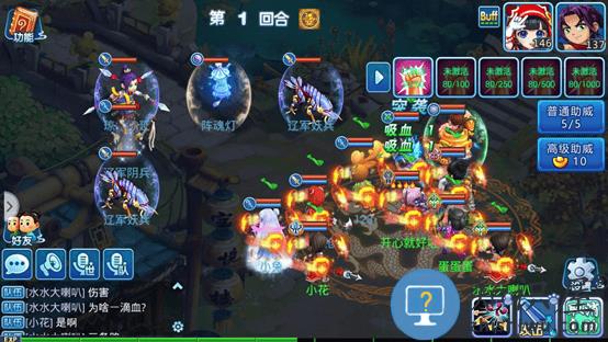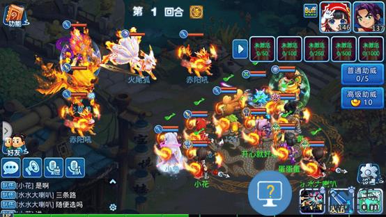 没错,这个玩法有观战系统,实力不足的玩家们可以选择观战,然后给出战的队伍助威。助威次数达到一定程度,可以触发增伤buff,最多为增伤200%。可以看到上图右上角的指令,破阵脚时,其他人可以给予5次普通助威(无消耗)和3次高级助威(10元宝/次)。助威本身不仅能获得战斗参与奖励,还能额外获得助威奖励。相应的,上场的队伍除了战斗参与奖励外,可以获得击杀阵脚的高级奖励。