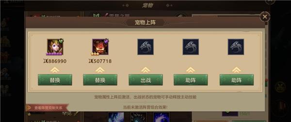 上阵宠物只需考虑技能搭配,其他宠物的养成属性永久加成到英雄身上,绝不浪费
