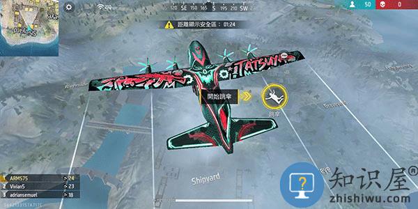 3、倒计时结束后,通过搭乘飞机前往战场,玩家点击跳伞后开始战斗