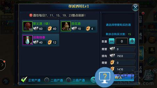 2、帮派酒窖:酒窖可以产出各种增加战力,防御,经验的好酒,聚义酒可以在帮派篝火那里喝增加大量经验,状元红可以使杀怪经验翻倍,属性酒可以增加各种buff,酒分为七中颜色,白、绿、蓝、紫、橙、红,白色最低,红色最佳,只要花费少量银子和帮贡就可以获得哦,想要升级升级路上快人一步吗?想要战斗时获得强力buff吗,快来喝酒吧,每种酒效果都是十分钟,根据帮派几倍产酒会出现高品质美酒,固定时间刷新,及时购买
