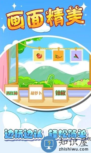3、认蔬果,通过生动的场景,认识几十种常见蔬果。