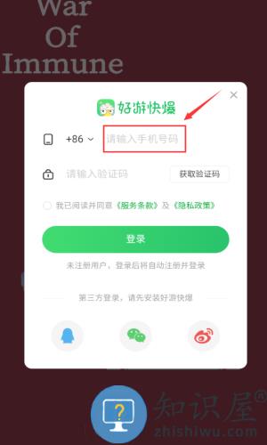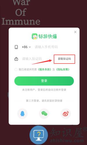 2、输入手机号码,准备获取验证码登录。