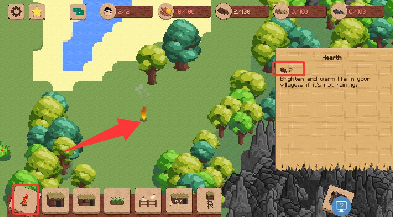 3、进入游戏界面点击红色框框那个小屋,然后点击火把。