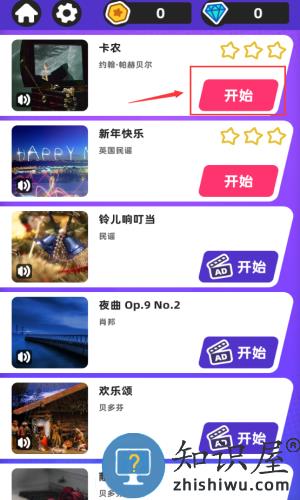 4、点击卡农曲目开始按钮,演奏古典钢琴乐曲。