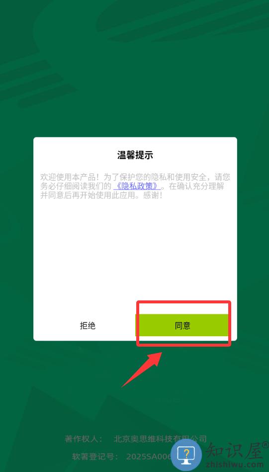 1、点击温馨提示里的同意并进入。
