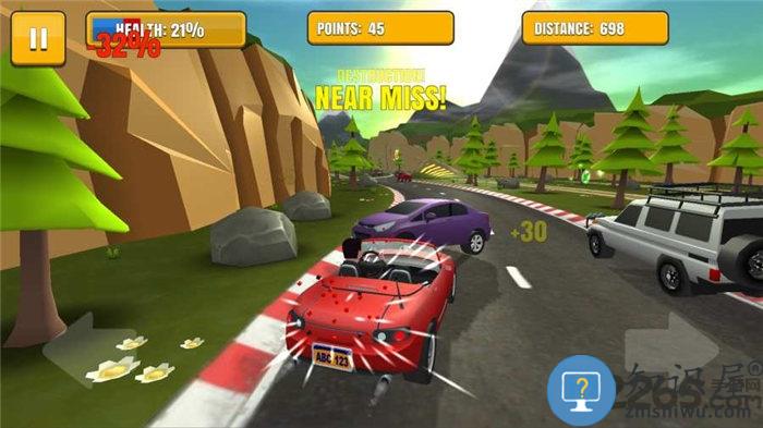 喜爱户外活动的男人,在某一天中,他驾驶着自己心爱的吉普车从山上往下行驶时,发现刹车功能居然失灵了,在车速无法停止下来的情况下,主角只能选择硬着头皮用暴力的方式下山。与其他跑酷游戏不同的是,在该作中玩家并不是控制人物进行跑动,而是控制一台失控的轿车,利用左右移动的方式,躲避一路上的树木、汽车以及火车等障碍,从而安全回到山下的安全区域。虽然路途惊险万分,但是玩家还需通过巧妙的下山线路,拾取一路上随机散布的金币,从而不断将其累积,购买解锁出更多可控制的帅气轿车。当你驾车行驶在下山的公路上时,如果突然发现刹车失灵,那么惊慌失措的你会怎么办?事情的结果要么是车毁人亡,要么就是凭借你惊人的胆识、高超的技艺成功脱险。现在给你机会让你挑战!在这个以物理学为基础的驾驶和撞车游戏中,你必须在山脉之间设法躲避无尽的危险障碍物,如树木、岩石、车流和火车,体验享受惊险有趣的驾驶。