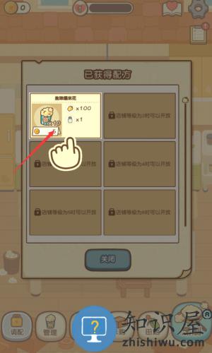 3、查看已获得配方,使用材料制作蒜辣嫩米花。