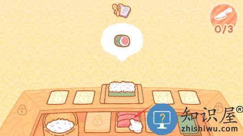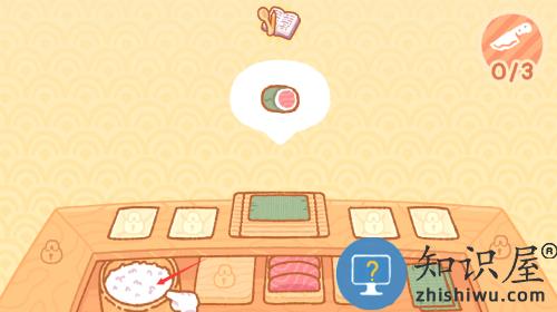 3、点击生鱼片食材,制作寿司卷完成。