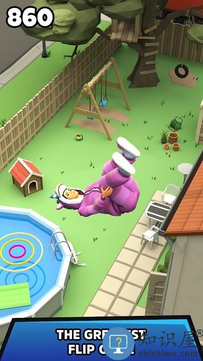 2、点击屏幕使出后空翻,注意预测跳跃的距离、高度,让他可以安全落地。