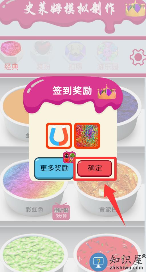 2、进入游戏会弹出签到奖励,点击确定领取。