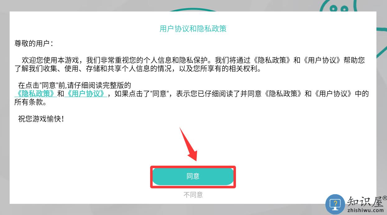 1、点击用户协议和隐私政策里的同意并进入。