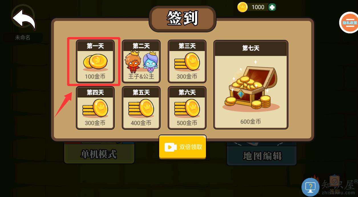 2、进入游戏会弹出一个每日签到奖励,点击领取。