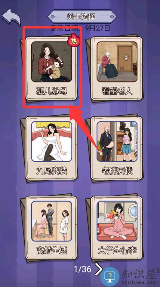 2、进入游戏选择过关点击第一个孤儿寡母。