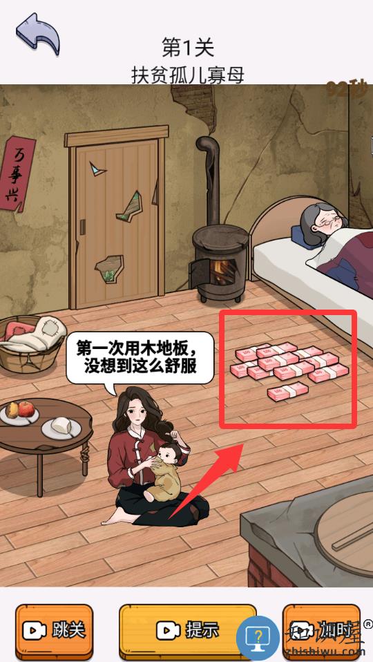 3、点击红色框框里的钱就可以通关了。