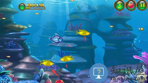2.碰到比自己大的鱼儿会被吞掉哦!
