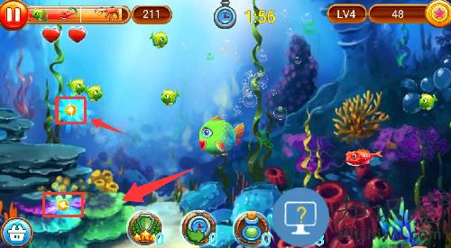 3、点击长按控制鱼吃小鱼,注意不要被大的鱼吃了。