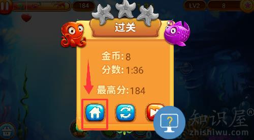 3、恭喜你过关了,你好棒棒啊,点击红色框框哪里回主页。