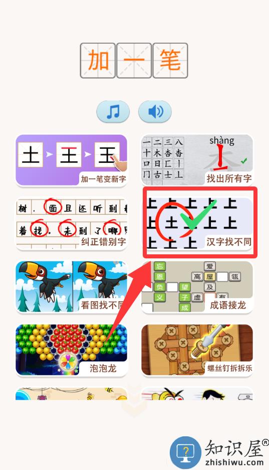 1、进入游戏界面点击红色框框里的汉字找不同模式。