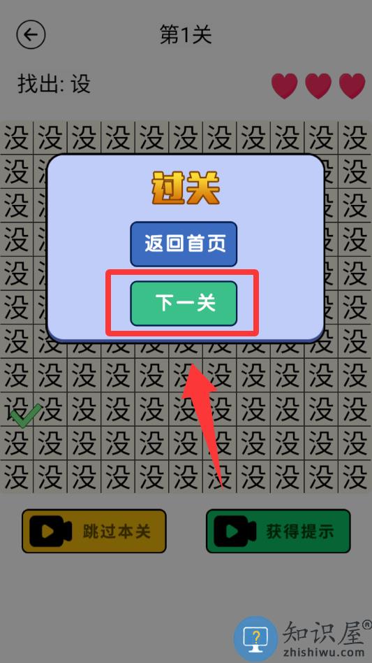 3、恭喜你过关,点击下一关继续,每关有3次机会。