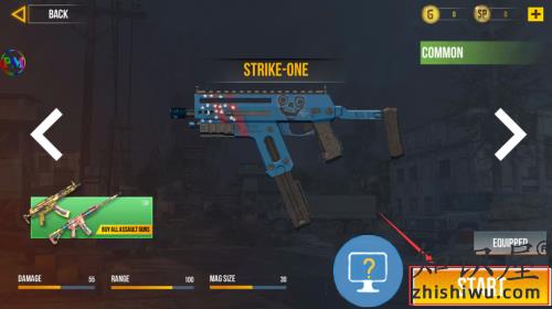 2、点击START按钮,使用已装备的冲锋枪开始游戏。