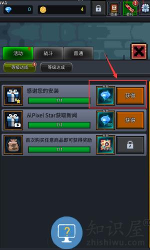 1、点击获得按钮,领取等级达成奖励一百钻石。