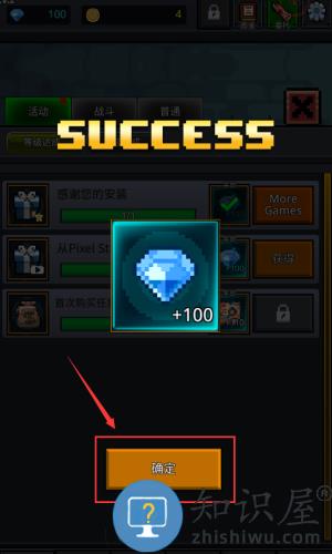 2、点击确定按钮,确认成功领取一百钻石奖励。