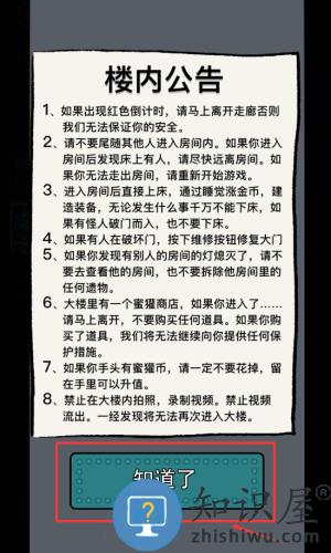 3、阅读楼内公告后,点击知道了按钮进入游戏。