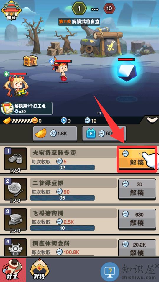 3、进人游戏点击红色框框里的解锁。