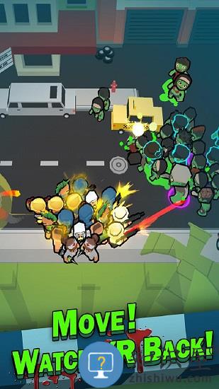 1、通过灵活走位与精准射击消灭四面袭来的僵尸。