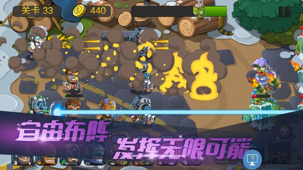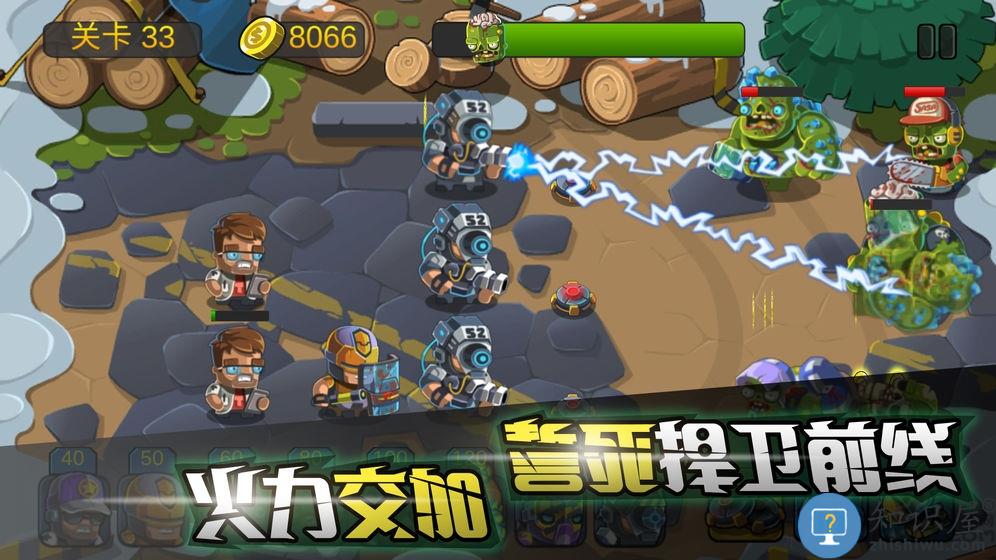 1、部署八类兵种组建防线抵御尸潮侵袭。