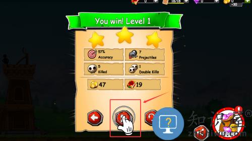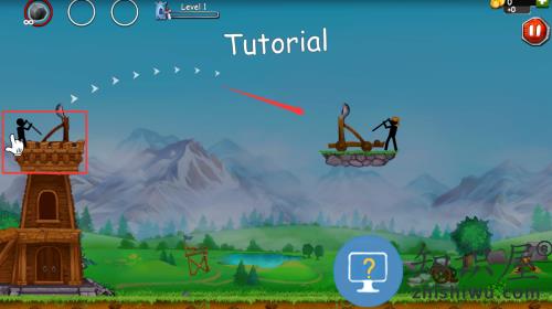 1、拉动投石机瞄准敌人,发射弹药完成攻击。