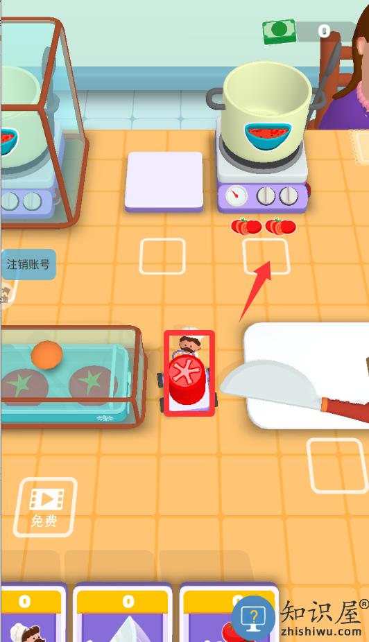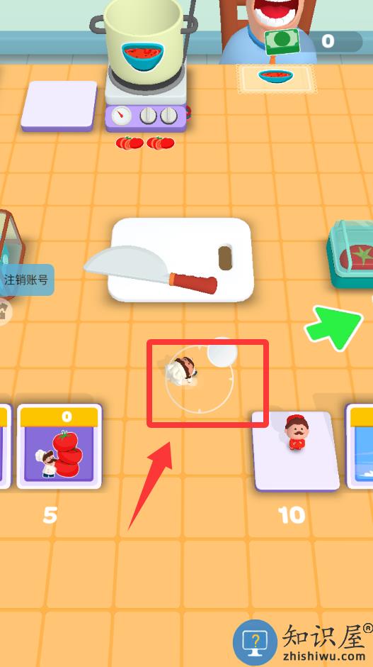 4、把切好的西红柿移动到红色框框哪里把它煮了。
