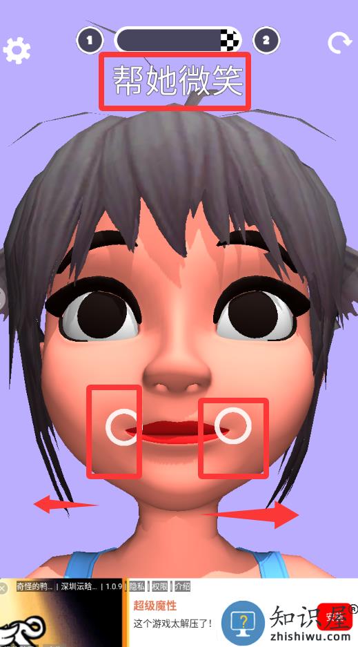 3、这关事帮它微笑,把嘴巴哪里拉开让它笑。