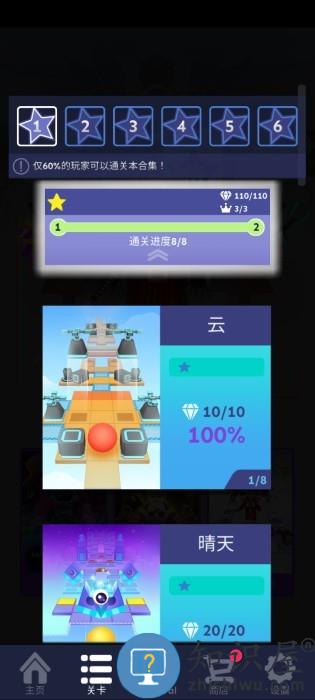 - 控制小球转弯、跳跃、躲避障碍物,收集钻石,开启每个音乐故事!