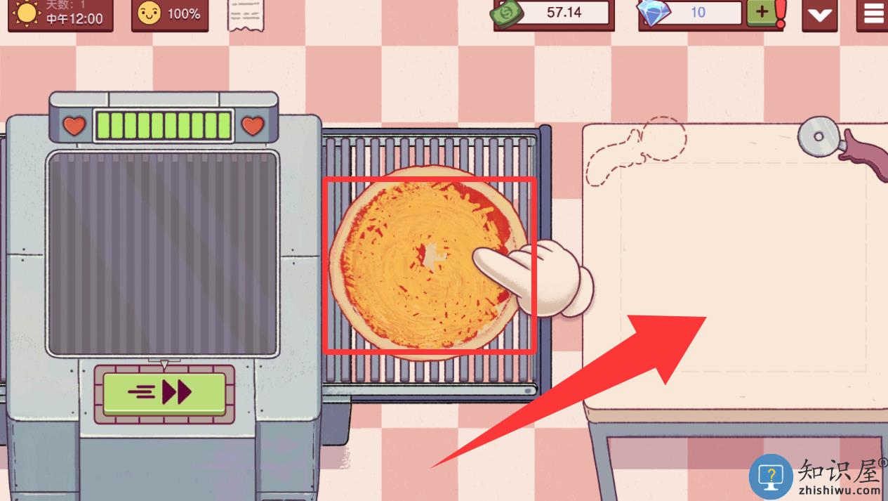 3、然后把做好的披萨移动到大叔哪里就完成任务了。