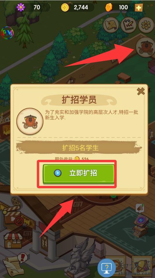 2、点击游戏界面里的扩招学员里的立即扩招。