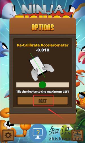 2、将设备向左倾斜至最大,点击NEXT按钮。