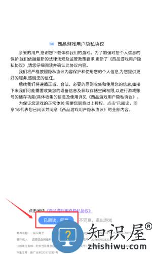 1、点击已阅读同意按钮,确认隐私协议开始游戏。