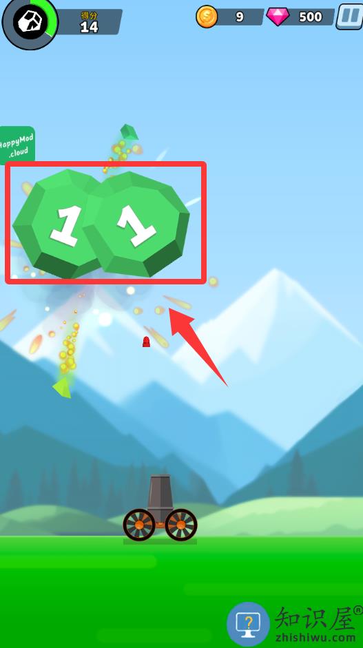 2、注意这些大球,打球会分开两个中球,中球会分开两个小球。