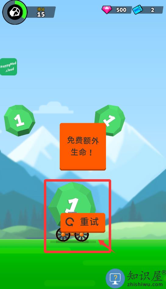 3、失败乃成功之母,被大球砸到了,点击重玩。