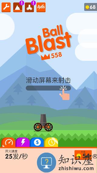 1、在游戏中消灭小球会获得金币,金币达到一定的数量就可以升级开火的速度,这里以每秒几发子弹来计算的,级别越高,开火的速度就越快,在游戏中更是容易快速消灭小球。