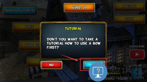2、点击YES按钮,确认参加弓箭使用教程。
