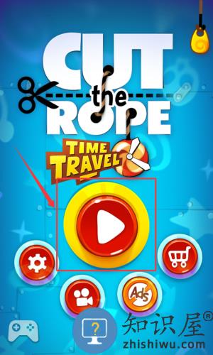 3、点击红色播放按钮,开始割绳子时光旅行游戏。